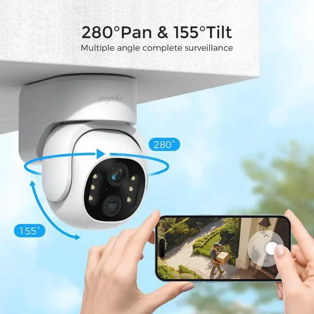 169° Wide Angle and Dual 2MP Full-Color Image: This outdoor wired security camera offers 280° horizontal and 155° vertical angles. Users can easily control the camera through the APP and have a clearer understanding of the surrounding environment. The camera is equipped with 6 lights (infrared and white light) to provide 2MP high-resolution images. Its 169° ultra-wide-angle lens and gun-ball linkage allow you to capture clear and detailed pictures and videos.