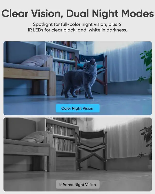 2K Dual-Lens | Panoramic View in Every Direction Experience true 2K resolution and complete 360° visibility with blurams dual-lens indoor camera! The combination of a fixed and a rotating lens ensures no blind spotscovering every corner from floor to ceiling. View both lenses on a split screen or switch easily via the blurams app. With color-enhanced night vision, youll always get bright, detailed footage, day or night.