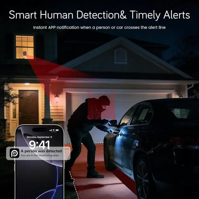 Customizable Smart Alerts & Fewer False Triggers Set custom detection lines, activity zones and sensitivity levels; The camera filters false alerts from pets, plants or weather, and sends instant phone notifications only when human motion is detected in your target areas