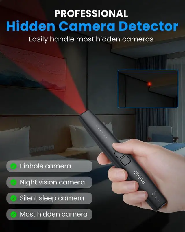 Next-Gen Hidden Camera Detectors Enhanced Edition: The all-new JAXTIN G9 Pro redefines privacy protection with an upgraded chip architecture, offering faster, smarter detection of hidden cameras, GPS trackers, and listening devices,etc. Enhanced with premium material finish and multimodal scanning, it's a new standard in personal privacy defense