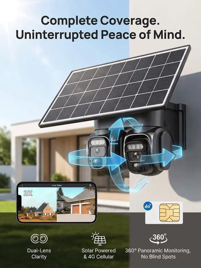 The dual-lens system allows the camera to monitor two areas at the same time. Combined with 360° pan and tilt, it helps reduce blind spots and provides a wider field of view compared to single-lens cameras.