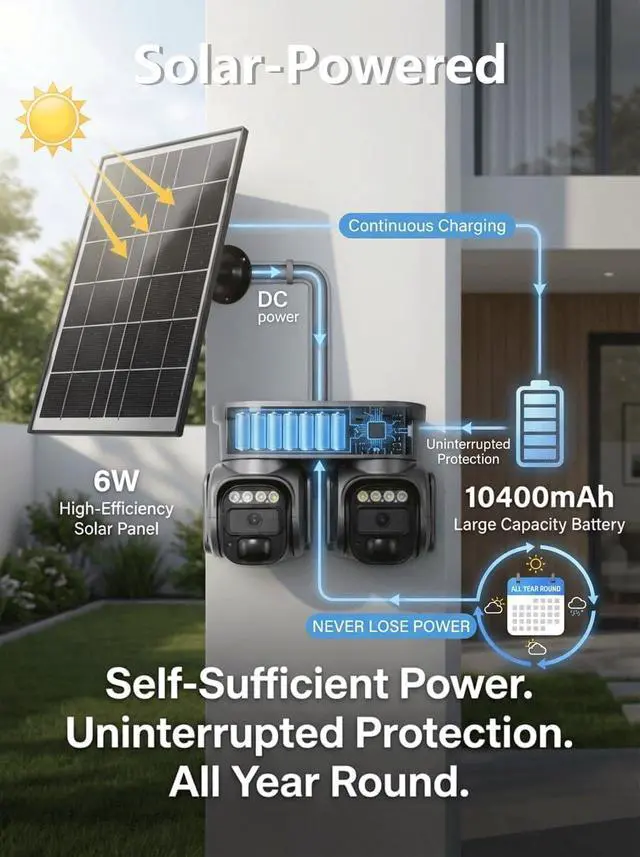 Yes, the camera is powered by a built-in rechargeable battery and an external solar panel. With sufficient sunlight, it can maintain daily operation without frequent manual recharging, helping reduce maintenance needs.