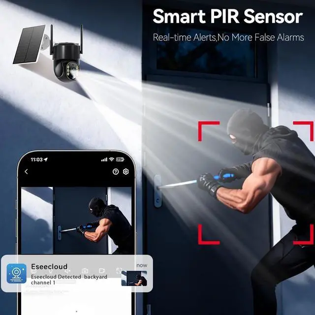 Human Detection & Two-Way Talk: Equipped with an advanced PIR sensor and AI human detection technology, outdoor camera wireless accurately identifies individuals entering its field of view and sends instant alerts to your phone, minimizing false alarms. Real-time two-way talk allows you to remotely converse with visitors or deter unwanted guests when necessary.