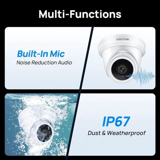 14K Ultra HD2112° Wide Angle3WDR4Flexible Recording5IP67 Waterproof1Smart Al Motion Detection2Built-in Mic3Multi-user Sharing4Convenient Remote Access5High compression1Why VIKYLIN?2VIKYLIN KOLS' Voice3What Customers Say4FAQ VIKYLIN Customer Real Pictures Real Ultra HD 4K EXIR 2.0 Night Vision 4K One-way Audio Turret PoE IP Camera VIKYLIN 4K 8MP PoE IP Camera Outdoor