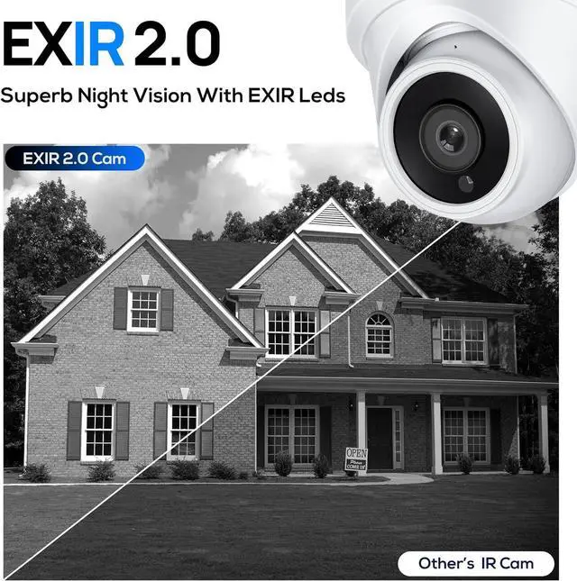 Advanced EXIR2.0 technology,with far-infrared range,night vision up to 98.4 feet,can capture every move of a thief or a playful jumping animal.