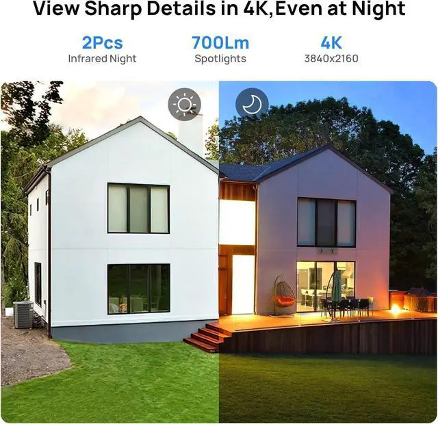 14K Ultra HD2112° Wide Angle3Built-in Mic4Flexible Recording5IP67 Waterproof1Smart Al Motion Detection2IVS Detection3Custom Detection Zones4Multi-user Sharing5Convenient Remote Access