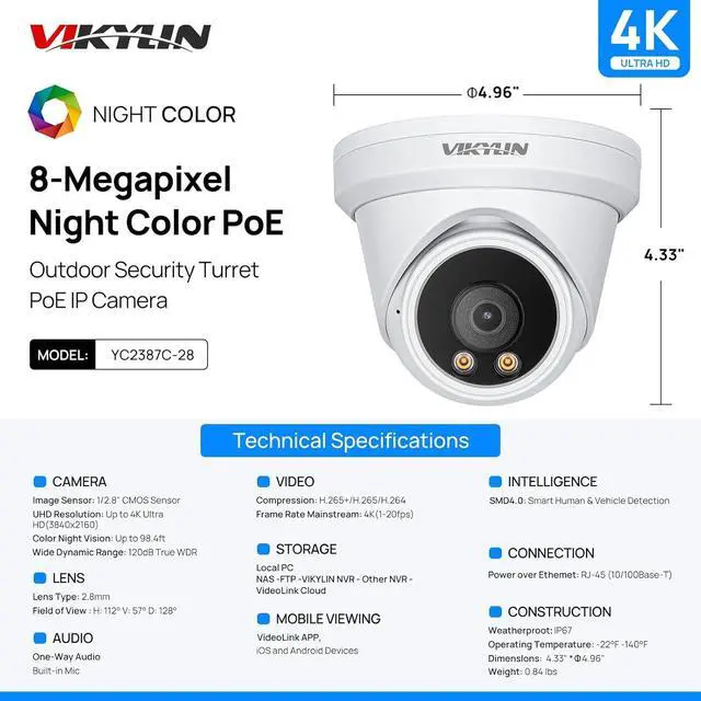 1Why VIKYLIN?2VIKYLIN KOLS' Voice3What Customers Say4FAQ 8MP 4K full color night vision Turret PoE IP Camera 4K 8MP Full Color PoE IP Camera,