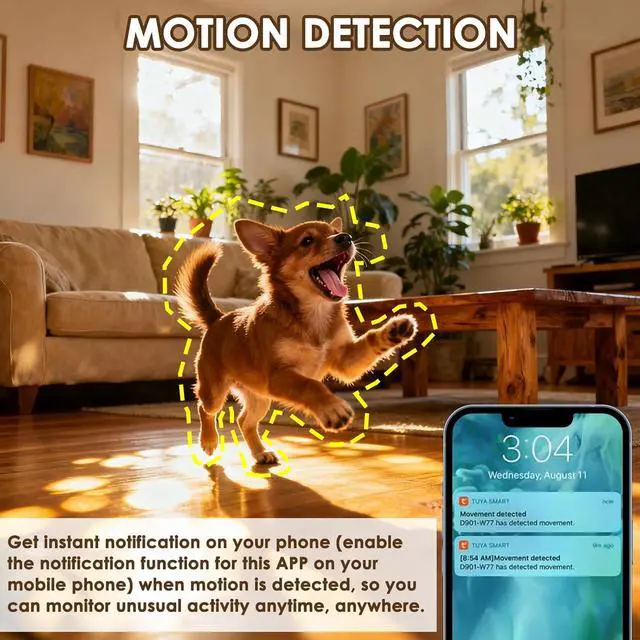 Intelligent Motion Detection: Equipped with advanced sensor technology, it triggers notification alerts when movement occurs within the monitoring area, effectively preventing potential safety hazards.