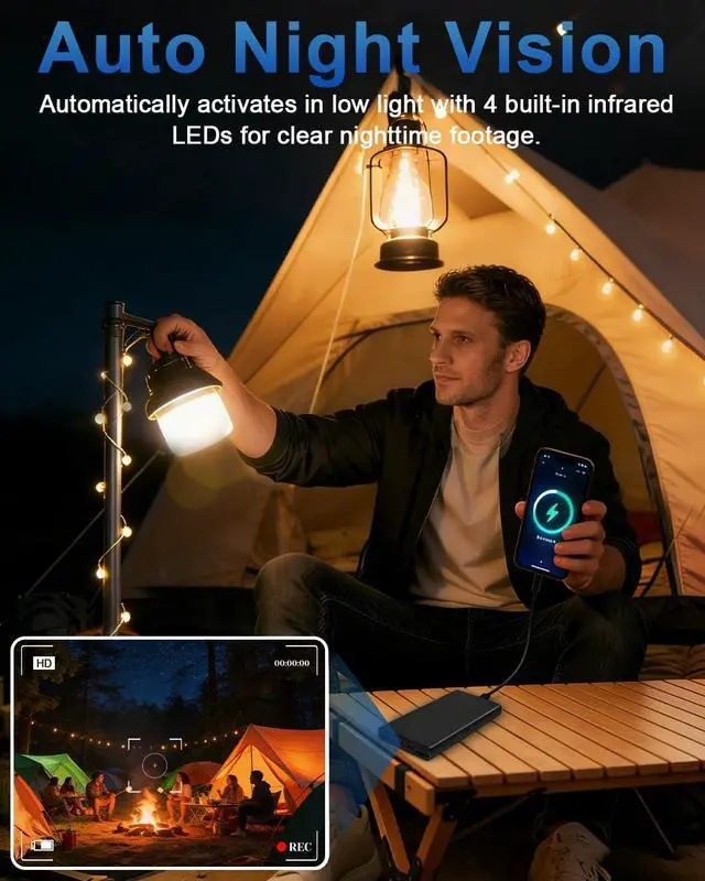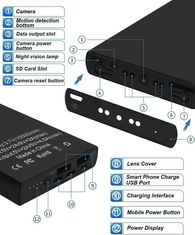10,000mAh High-Capacity Dual-Output Power Bank: More than just a mini camera, its also a reliable power hub. With its 10,000mAh large battery, it can charge devices like smartphones multiple times and supports two USB ports to power two devices simultaneouslyperfect for travel, business trips, or daily commutes.