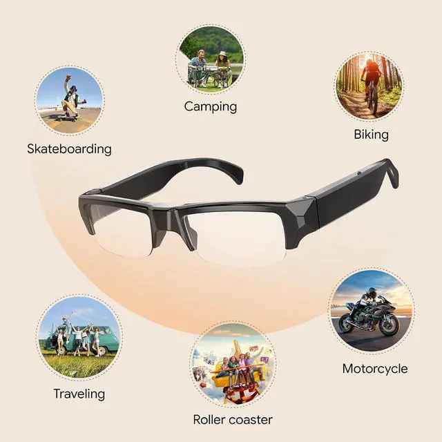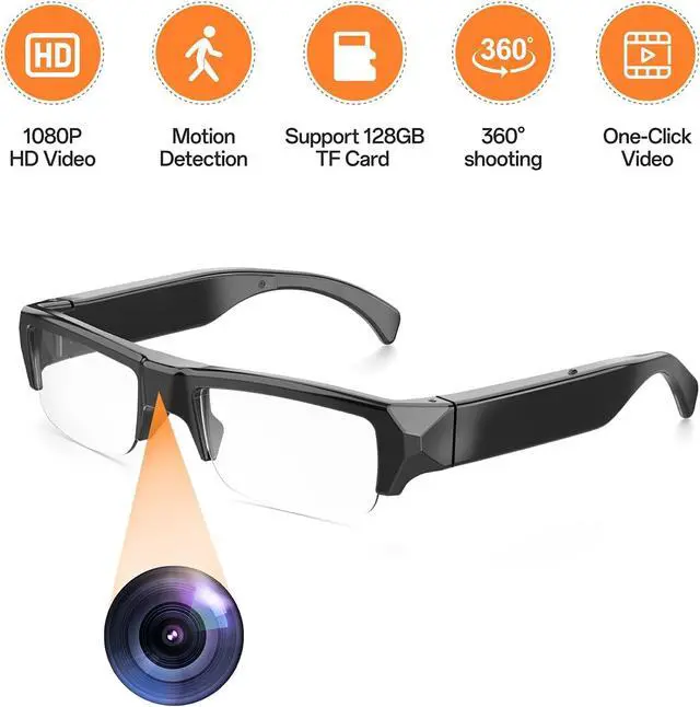 [1080P HD Camera Glasses]: The Mini glasses record video in full HD 1080p , wear it to record what you see, Never miss an adventure while keeping your hands free.However, it will affect the video quality when used in a dark environment or during fast motion.