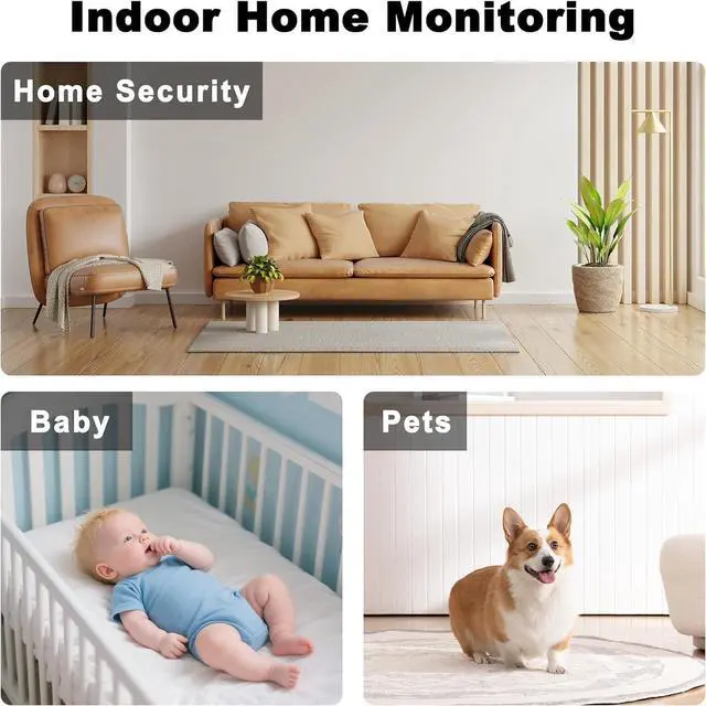 Ideal Indoor Nanny Cam for Pets, Baby & Home SecurityPerfect for keeping an eye on pets, checking in on your baby with a sitter, or monitoring indoor spaces like living rooms and offices. Designed for indoor use only.