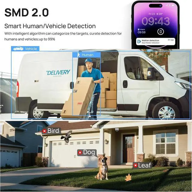 Smart Human/Vehicle Detection & Built in MicThis full color 4k poe camera is advanced person/vehicle detection based on cutting-edge detection algorithms helps identify real threats, and when an alarm occurs, the camera captures it in time and sends an alarm message to your phone, the accuracy rate is up to 99%. It can also specify the type of detection when sending motion alerts to you. 4k ip camera built-in mic , real-time capture of the sound around the camera,don't miss any details.