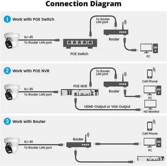 AI Smart Alert System This poe ip camera have advanced AI technology accurately distinguishes people, vehicles, and animals, reducing false alarms by 95%; instantly pushes mobile notifications when suspicious motion is detected.