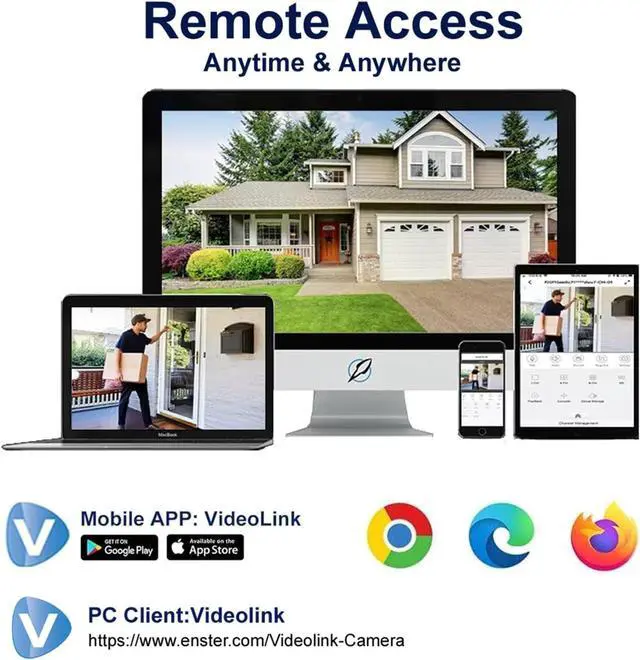 PoE Power & Flexible Storage 4K Poe camera supports Power over Ethernet (PoE) for simplified cabling; stores footage via micro SD card soft , Easy view on VideoLink, Web browser like Edge, Firefox, Chrome. Compatible Onvif, RSTP Camera