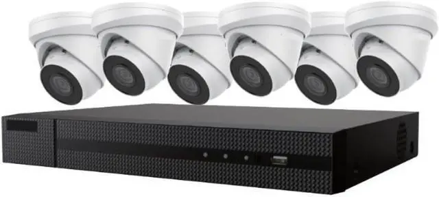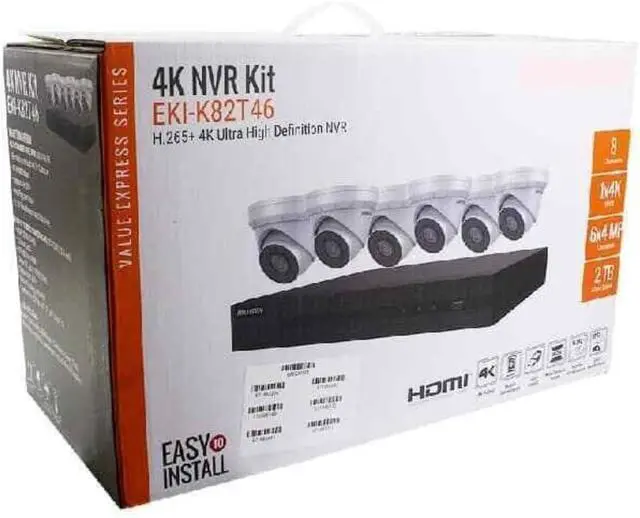 EKI-K82T46 8 Channel IP Camera System, 4K 8ch PoE NVR Kits 2TB HDD + 6 x 4MP IP Turret Cameras, 2.8mm H.265+, 120dB WDR, EXIR 2.0 with 100ft
