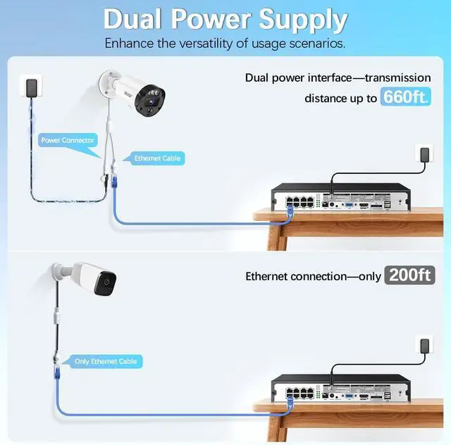 PIR Motion Detection & Email AlertThe poe security camera system is equipped with advanced motion detection features. Once the security camera detects movement, it can activate multiple security responses, including turning on the alarm, sending an alert and picture to your email box, communicating information to the app, and triggering a recording