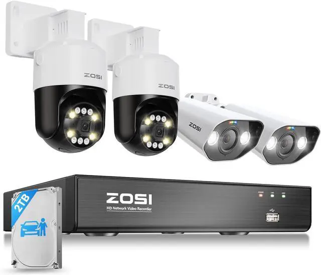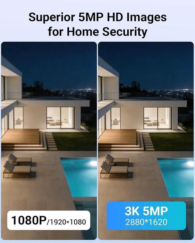 (3). [ 5MP 3K HD & IP66 weatherproof] __ Enjoy crystal-clear detailed images with 3K resolution of 2880x1620 pixels, which is nearly 2.5X better than 1080p cameras. This PoE security camera system comes with 2 360° View pan tilt PoE cameras and 2 bullet PoE cameras, allowing you to monitor larger areas with fewer cameras by capturing a wider field of view. The security camera is built to endure harsh weather conditions with an IP66 weatherproof rating and high-quality materials, ensuring a longer lifespan and minimal maintenance.