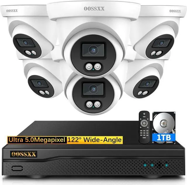 OOSSXX Wired CCTV Camera Security System 5.0MP Definition Full HD AHD Dome Cameras Security Systems Outdoor Home Video Surveillance DVR Kits (6cams-1TB)
