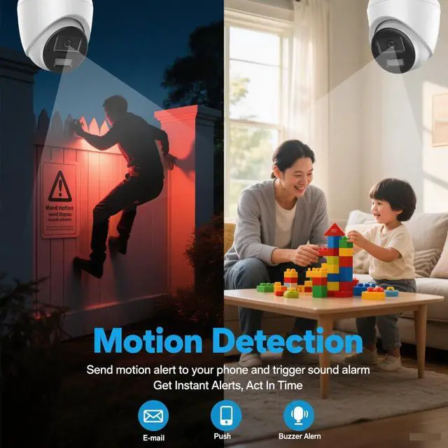 Advanced Motion Detection 2.0 with Human/Vehicle Analysis: Say goodbye to false alarms! The systems Motion Detection 2.0 leverages intelligent human and vehicle analysis technology to accurately distinguish between real threats (people and vehicles) and irrelevant movements (pets, leaves, etc.). Youll receive timely, targeted alerts via your smartphone, enhancing security efficiency while reducing unnecessary notifications.