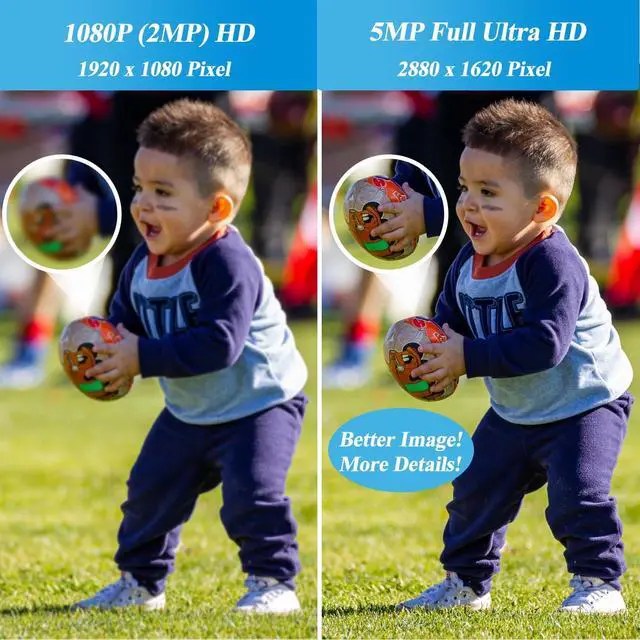UlatraHD 5MP Quality / IP65 Weatherproof CMOS 1/3 image sensor & 5.0 megapixel (2880 x 1620P) at 20 fps, make a clear and smooth high quality images/videos with more details. IP65 weatherproof for outdoor and indoor use. Even in unfavourable weather conditions, it provides you with brilliant HD resolution.