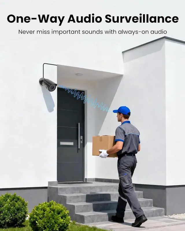 One-Way Audio: This indoor outdoor wired camera features a built-in microphone, providing audio monitoring alongside video recording for comprehensive surveillance. (Note: Two-way talk is not supported.)