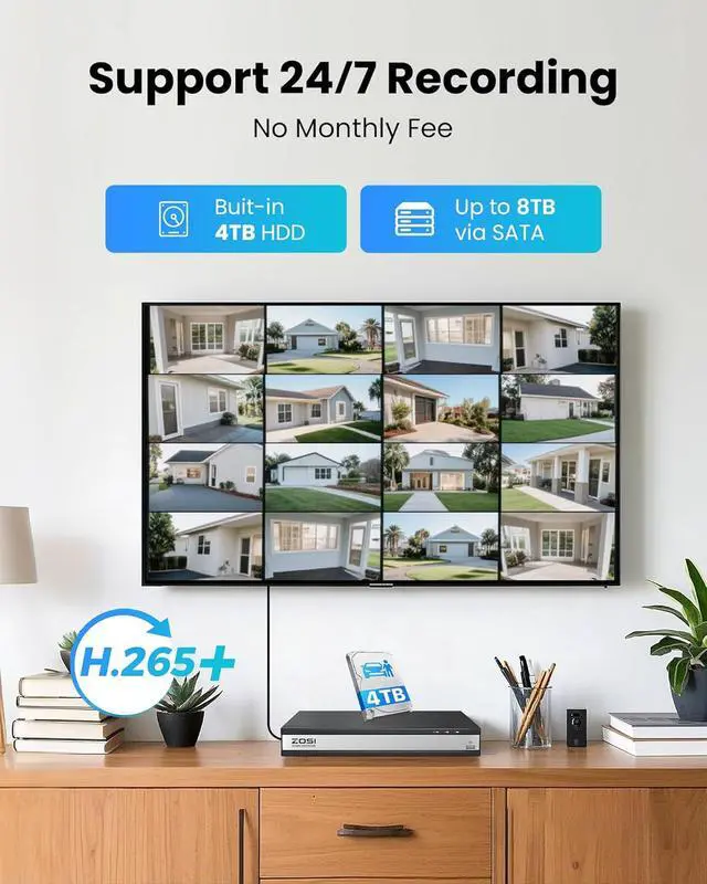 Reliable 24/7 Recording: This 16CH wired system includes a pre-installed 4TB surveillance-grade hard drive for continuous recording. Upgraded H.265+ technology saves more storage, enabling longer recording and smoother playback. The DVR supports automatic overwrite of old footage and manual backup of important clips to USB drives.