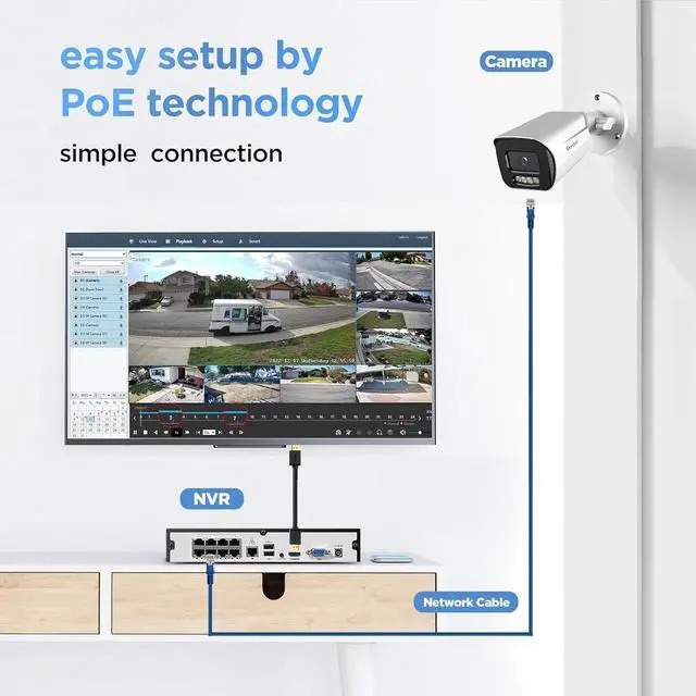 P2P ( Plug and Play): The integrated Power over Ethernet (PoE) technology enables a true plug-and-play setup. By carrying power, video, and audio over a single network cable, it eliminates complex wiring and configuration. This streamlined approach makes professional-grade HD video surveillance exceptionally accessible for both beginners and DIY enthusiasts.