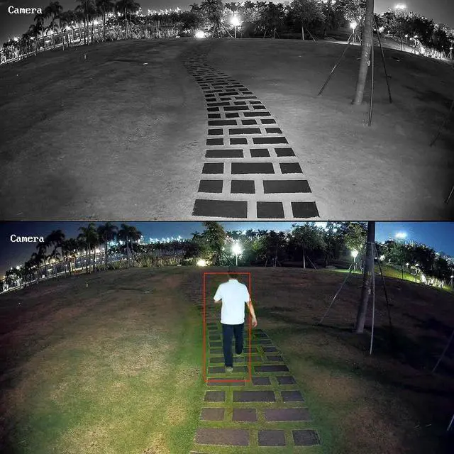 Smart Dual Light Full-color Night Vision: The camera features three night vision modes: Smart Color, Full Color, and Infrared. By default, it operates in Smart Color mode. In this setting, the camera remains in power-efficient black-and-white IR mode until its AI detects a person or vehicle. It then automatically activates a warm supplemental light and switches to full-color video recording. Once the subject leaves, it seamlessly reverts to IR mode to conserve energy.