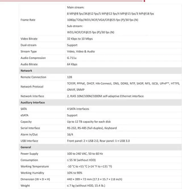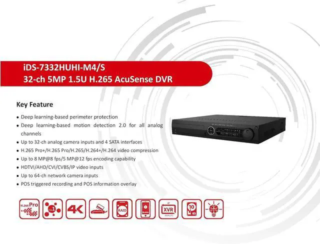 Up to 32-ch analog camera inputs and 4 SATA interfaces, 1 eSATA