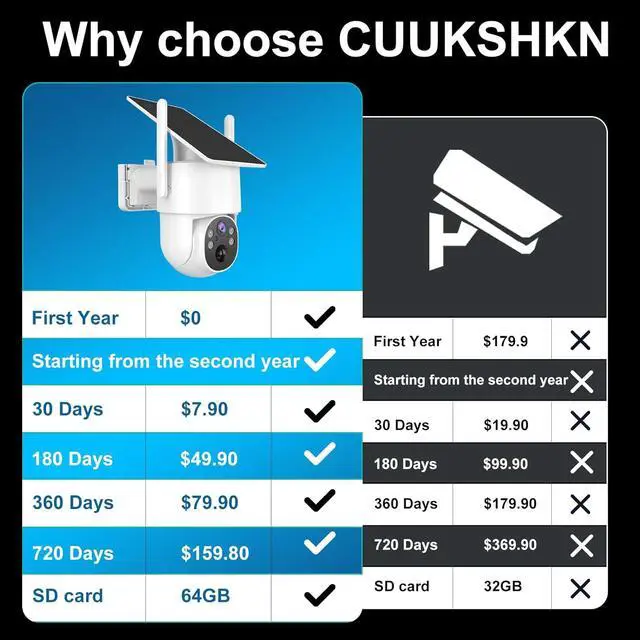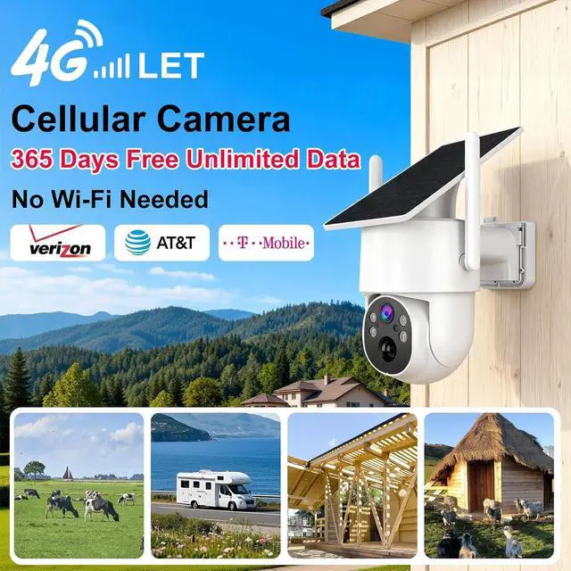 365-Day Free Data & Budget-Friendly Cellular PlansPerfect for Off-Grid Security,This cellular security camera includes a full year of free, unlimited 4G data upon activationno hidden fees, no contracts. Once your free year ends, stay connected easily: just scan the QR code on the camera to choose a lowcost plan that fits your needs. Options start as low as $7.99/month, $79.99/year(about $0.22/day). No internet? No problem. With reliable cellular connectivity, you can monitor your property from anywhere