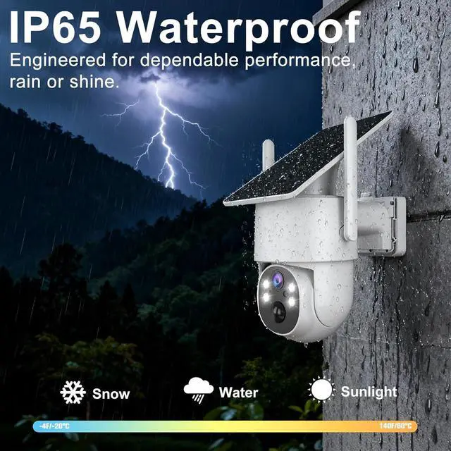 Solar Powered & All-Weather Cellular CameraThis outdoor cellular camera features a high-capacity 7800mAh battery and an efficient 3W solar panel for continuous, wire-free power. With ample sunlight, the system delivers uninterrupted energy for year-round surveillance, supporting up to 2 months of standby time. Built to withstand the elements, its IP65 waterproof design ensures reliable performance in rain, snow, and dustproviding true all-weather protection for your home, worksite, or remote property