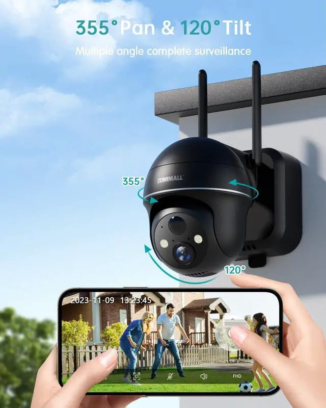 360° View & 4X Digital ZoomCover every angle with no blind spots. This security camera wireless outdoor features a 130° wide field of view and rotates 360° horizontally and 120° vertically for a complete panoramic view. Digitally zoom in 4X on critical details to track movement across your entire property