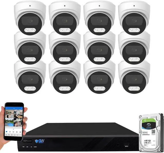 12.0 Megapixel Full HD Realtime Recording 16 Channel 12MP NVR (Support up to 12MP/8MP/5MP/2MP cameras, you can use the system with your existing cameras and add 12MP high resolution cameras later) and (12) 8MP 4K Weatherproof Outdoor/Indoor Color Night Vision POE IP Dome Cameras (Built-in microphone and 2.8mm 130° wide angle lens)