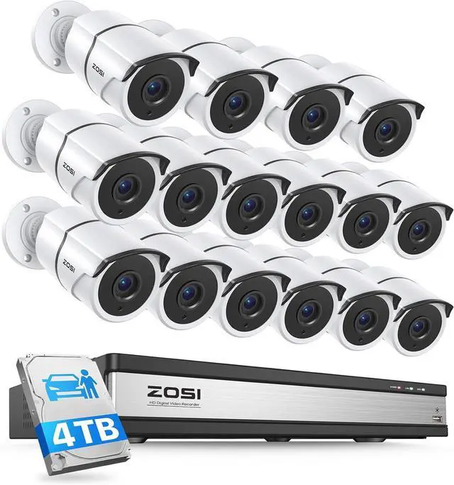 1.16CH Professional System & 4TB Security Grade HDD Pre-installed 4TB surveillance-grade hard drive supports 24/7 non-stop recording with No Monthly Fees. This complete 16-channel wired kit includes 16 high-definition cameras, providing 100% blind-spot-free coverage. Ideal for massive warehouses, retail stores, or large estates requiring a professional-grade, local storage security solution.