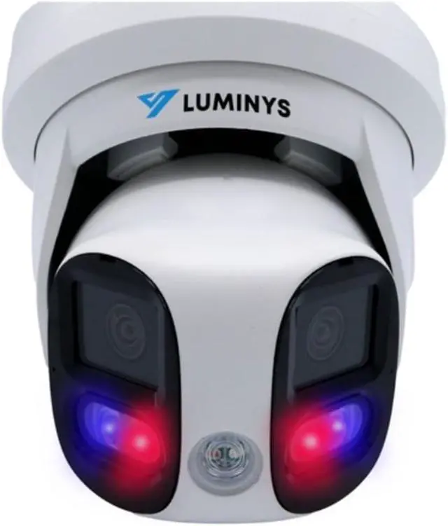 180° Stitched Multi-Sensor LumiLuxSmart IR and White-Light LEDs LumiDeterrent With Red/Blue Lights and Built-In Speaker Video Content Analytics: Line Crossing and Intrusion iMD, LumiSearch, LumiTracking-E