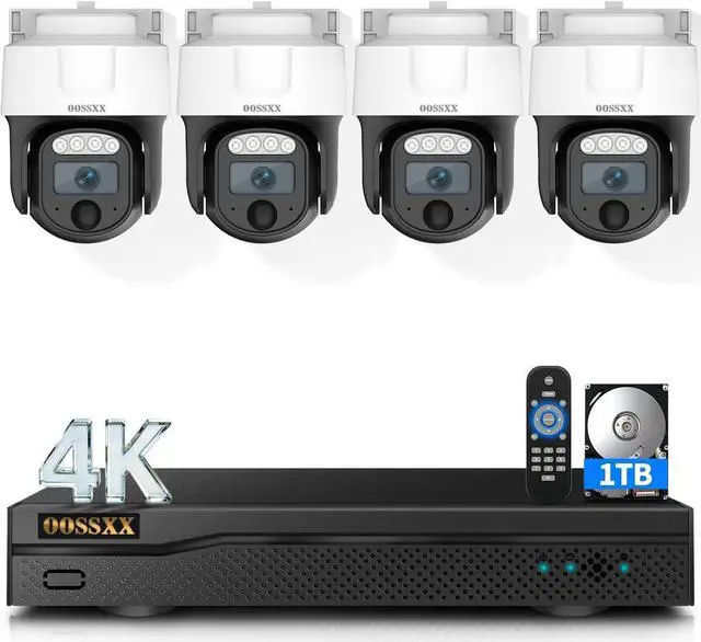 {350°Pan & 90° Tilt Surveillance Camera} This security cameras feature flexible 350° pan and 90° tilt, achieving 360° All- Around Security to eliminate blind spots. Even more conveniently, you can remotely adjust its viewing angle through a DVR or your phone. Great for monitoring large yards, garages, or driveways with minimal blind spots. {4K Ultra HD High Definition} OOSSXX 4K(8MP) outdoor camera provides almost 4 times the clarity of 1080P, allowing you to digitally zoom in without sacrificing image quality. It equipped with WDR technology automatically adjust to deliver well-balanced exposure and detailed surveillance footage, ensuring reliable 24/7 monitoring. {122° Ultra Wide-Angle Lens Equipped} Optical wide-angle lens with multi-layer lens, provides you about 122° wide viewing angle and reduces dead ends of surveillance areas. {Microphone Inside} The built-in microphone supports remote audio monitoring, letting you hear on-site sounds within the coverage area. The dvr for security camera system offers multiple recording modes to suit your needs: continuous recording, scheduled recording, and motion-triggered recording. {Free App No Month Fee} Download the "Honestview" app for this outdoor security camera from your device's app store to enjoy remote video access. Playback significant footage easily by searching through different days, hours, or minutes. with internet connectivity on this home camera system, you can view live videos from anywhere on your smartphone, tablet, or PC, ensuring you stay always connected.