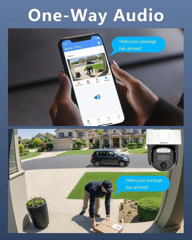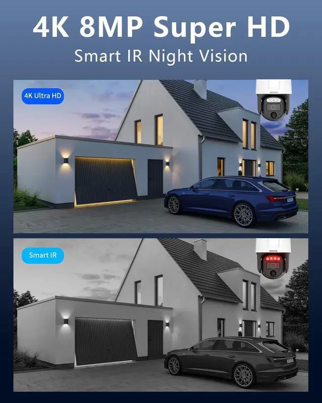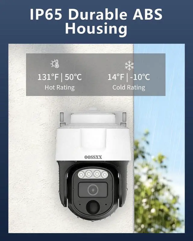 {4K Ultra HD High Definition} OOSSXX 4K(8MP) outdoor camera provides almost 4 times the clarity of 1080P, allowing you to digitally zoom in without sacrificing image quality. It equipped with WDR technology automatically adjust to deliver well-balanced exposure and detailed surveillance footage, ensuring reliable 24/7 monitoring.