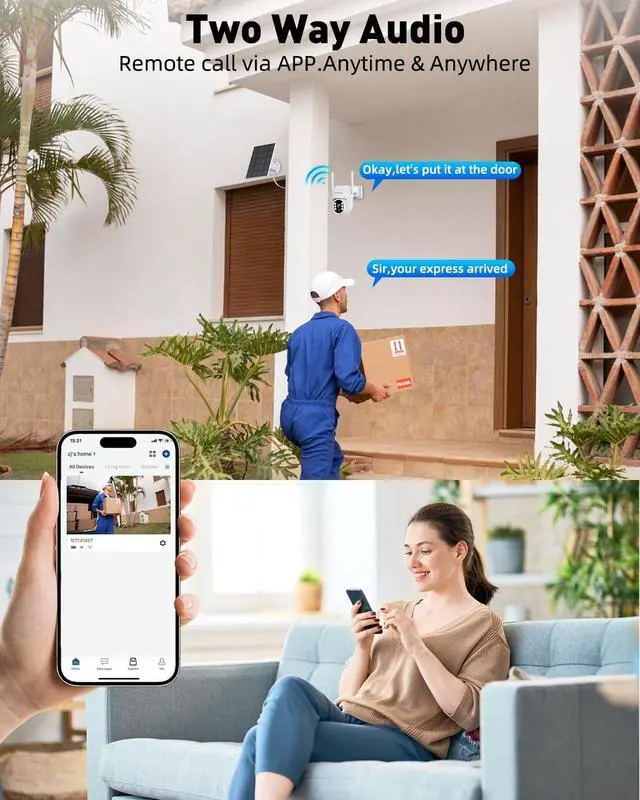 Real-Time 2-Way Audio & Multi-User Access The CASACOP 4G LTE cellular security camera features a built-in microphone and speaker, enabling clear, instant communication. Remotely speak to anyone near the wireless cameras for home security through the app. The wireless camera outdoor also supports multi-user sharing (up to 8 accounts), allowing secure, simultaneous access to live views and features for family or colleagueswithout Wi-Fi.