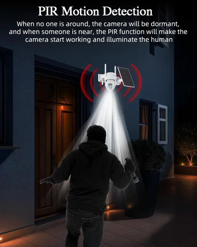 Smart PIR Motion Detection This home security cameras wireless outdoor is equipped with a highly sensitive PIR sensor, enabling fast and precise detection of human or animal movement. Once triggered, the home camera instantly sends real-time alert notifications directly to your phone. (Sensitivity is fully customizable within the CASACOP App.) Requiring no Wi-Fi or complex wiring, this security camera wireless serves as your unwavering, watchful eye over the places that matter most.