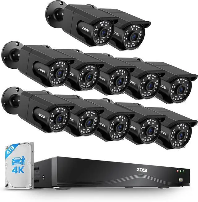 (5). [ Customizable Recording Modes with 4TB HDD ] __ With a built-in 4TB security-grade hard drive, the ZOSI NVR offers four recording modes: continuous 24/7 recording, scheduled recording, motion-activated recording, and recycle recording. Customize each cameras recording mode and download files to a USB for easy backup.