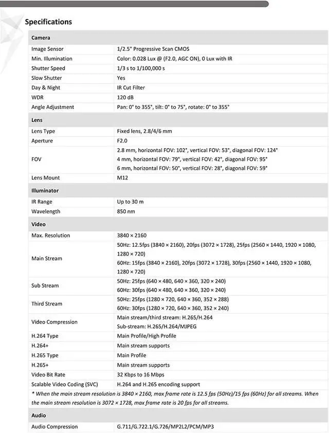ULTRA HD CLARITY - UltraHD 4K 8MP high resolution (3840×2160) footage, captured by a 2.8mm lens