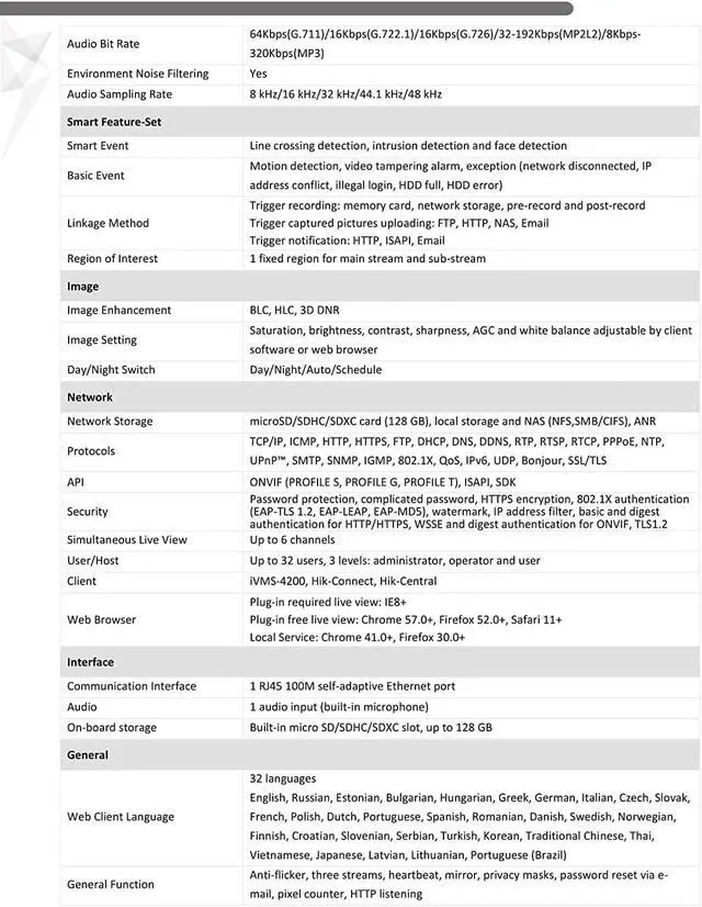 QUALITY - Built in Microphone, 3D Digital Noise Reduction, Digital Wide Dynamic Range, IR Range Up to 45m, Video Compression: H.265+/H.265/H.264+/H.264