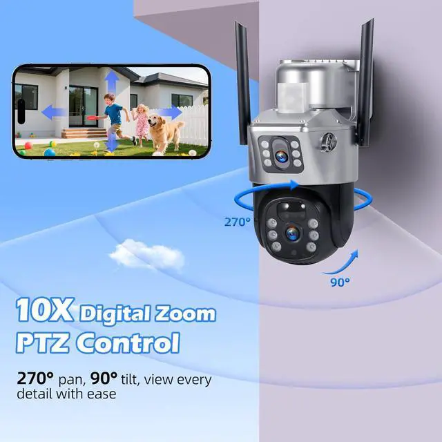10X Digital Zoom & PTZ Control Supports 10X digital zoom, 270° pan and 90° tilt. Easily check close-up details or wider coverage through the V380 Pro app.