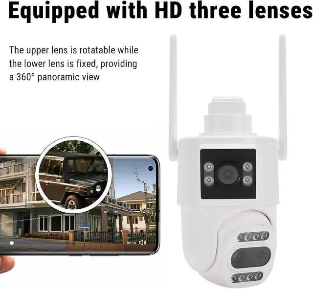 HD Three Lens: Equipped with three lenses to provide a true 360° panoramic view with no blind spots. The upper lens rotates while the lower one remains fixed, ensuring simultaneous detecting of two different locations.