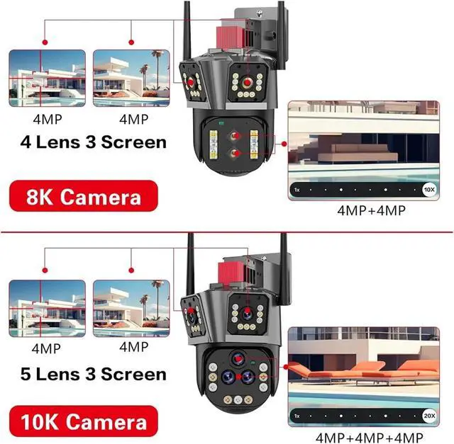 The unique five-lens design gives the camera a wide-angle field of view that can cover multiple monitoring areas simultaneously, reducing blind spots. You can view multiple corners in real time through the camera to fully grasp the surrounding dynamics, providing more efficient monitoring and protection. Whether it is a large area of the yard or a number of scattered areas, it can be easily covered to improve the security effect.