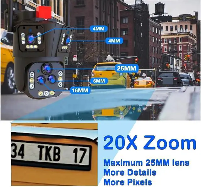 Equipped with a powerful 20X optical zoom feature, this camera allows you to easily view distant objects. Whether you're monitoring a large area or focusing on a specific detail, you can adjust the focal length to ensure a sharp and distortion-free picture. No need to worry about missing any details, from far to near, easily control every corner.