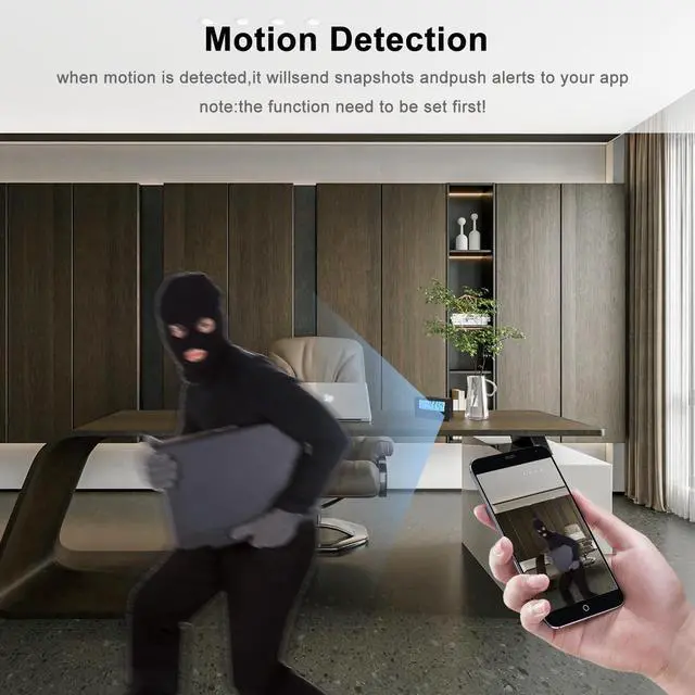 Motion Detection AlarmHidden camera can intelligently detect motion and record data immediately when someone breaks into your home or office, without worrying about losing important evidence. Alert notifications are instantly pushed to your mobile app, so you never miss an important moment.