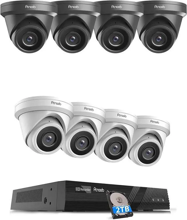 4X 8MP Black PoE Dome IP Cameras( Not included ethernet cables)