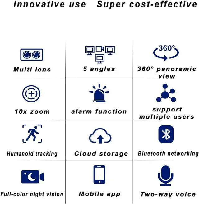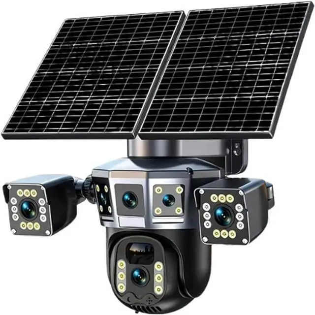 Three lenses, five screens+360 ° panoramic view, full range monitoring without blind spots: The three cameras can rotate independently and the ball camera gimbal can rotate flexibly. The five screens synchronously present the monitoring image, achieving 360 ° panoramic coverage without blind spots. Multiple areas can be monitored simultaneously, and the field of view far exceeds that of ordinary single lens cameras
