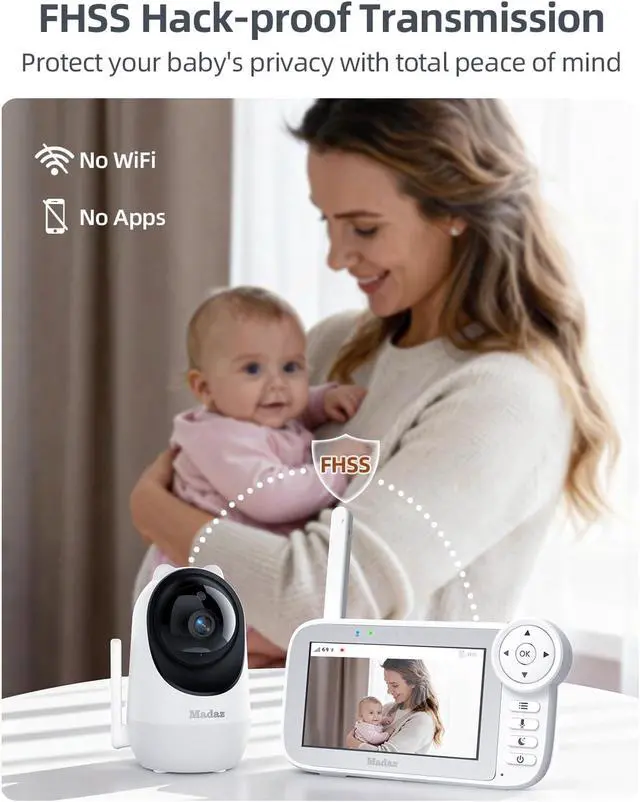 [Crystal-Clear Two-Way Audio] Talk & Listen in Real Time: The Madaz baby monitor with camera and audio features built-in, crystal-clear two-way audio, letting you communicate with your baby anytime. Whether youre in another room or on a different floor, your voice reaches your baby instantly soothing your baby or checking in without entering the room.